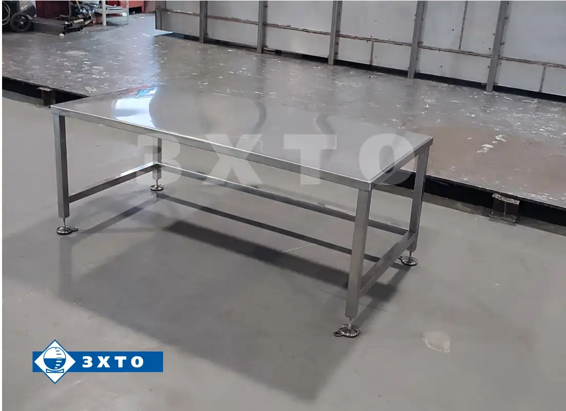 Стол фармацевтический стационарный с цельносварным каркасом, швы зачищены, отполированы, пассивированы. Материал стола устойчив к агрессивным химическим веществам, высоким температурам и влажности, может использоваться в чистых помещениях. Стол оснащен регулируемыми опорами.